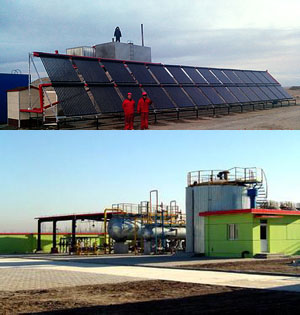 二連油田賽罕塔拉采油廠單井罐太陽能加熱工程安裝完畢并正常遠行。